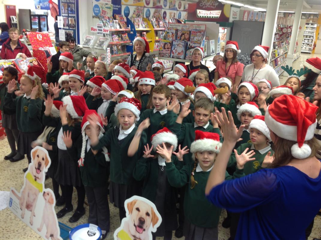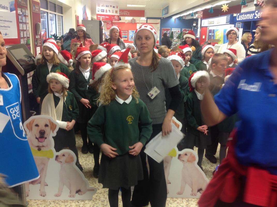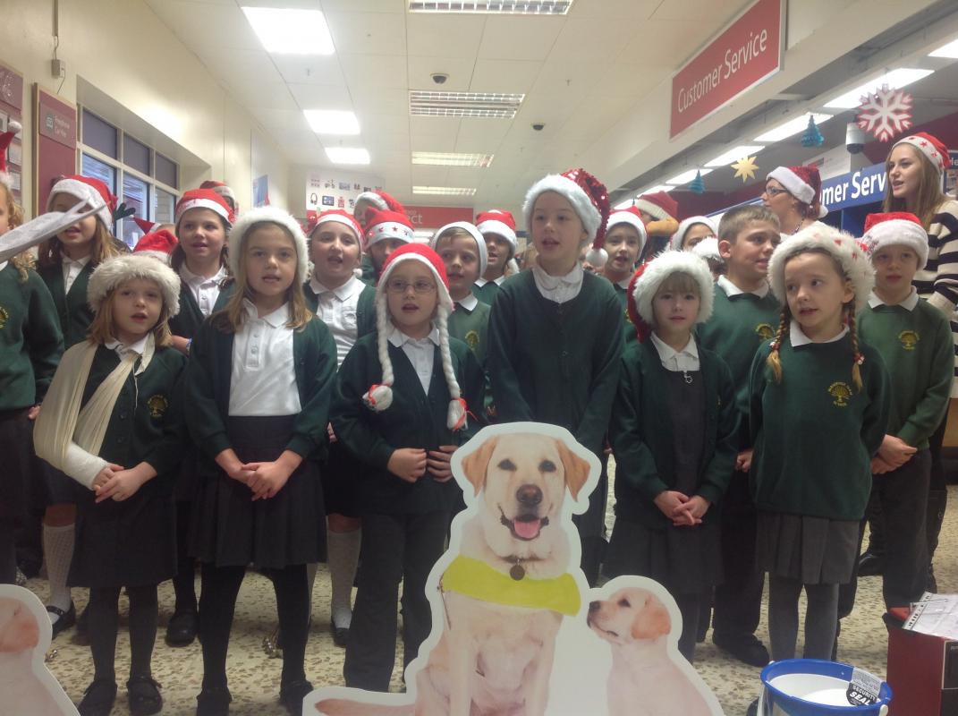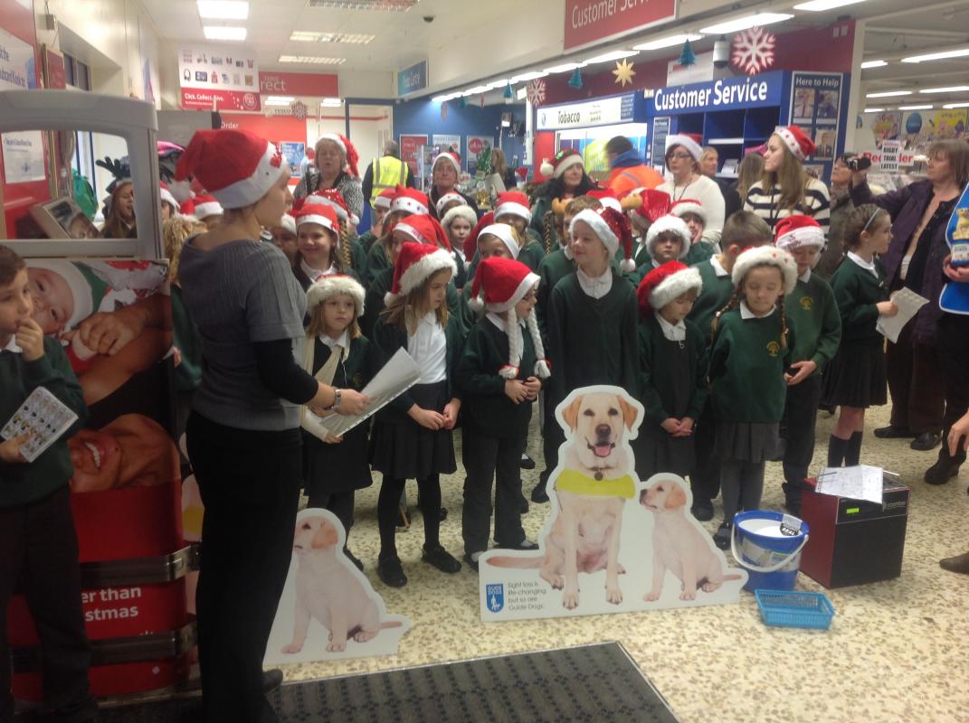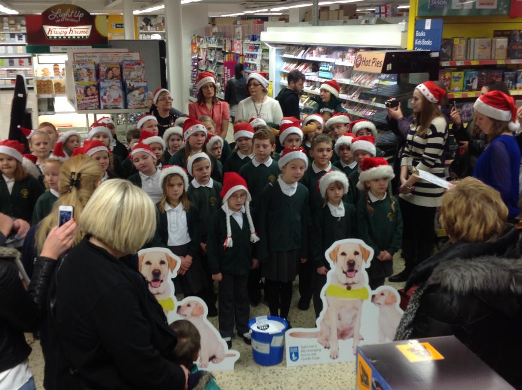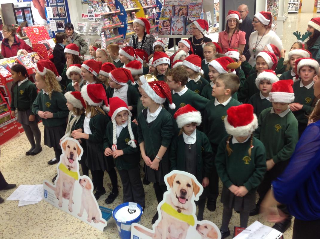 Parsonage Farm choir headed to Rainham Tesco to spread christmas spirit and raise money for the Guide dogs.