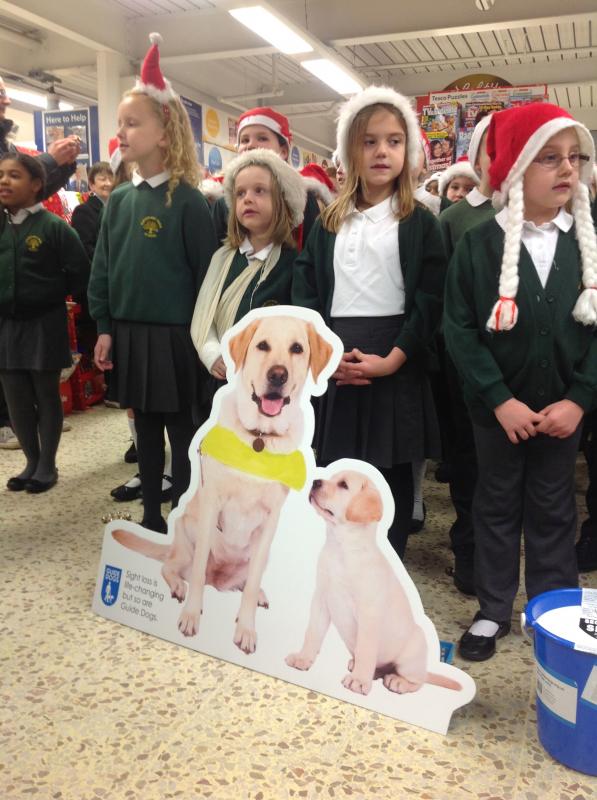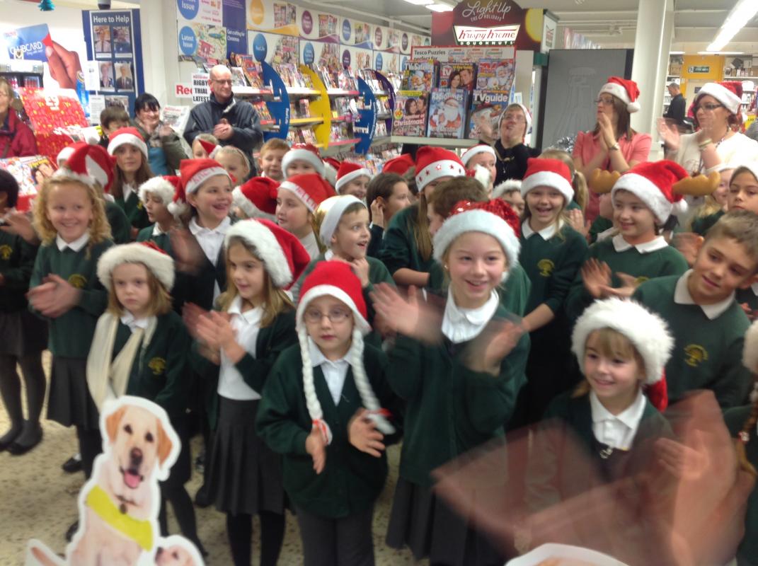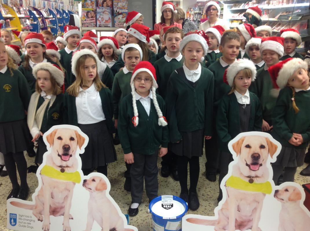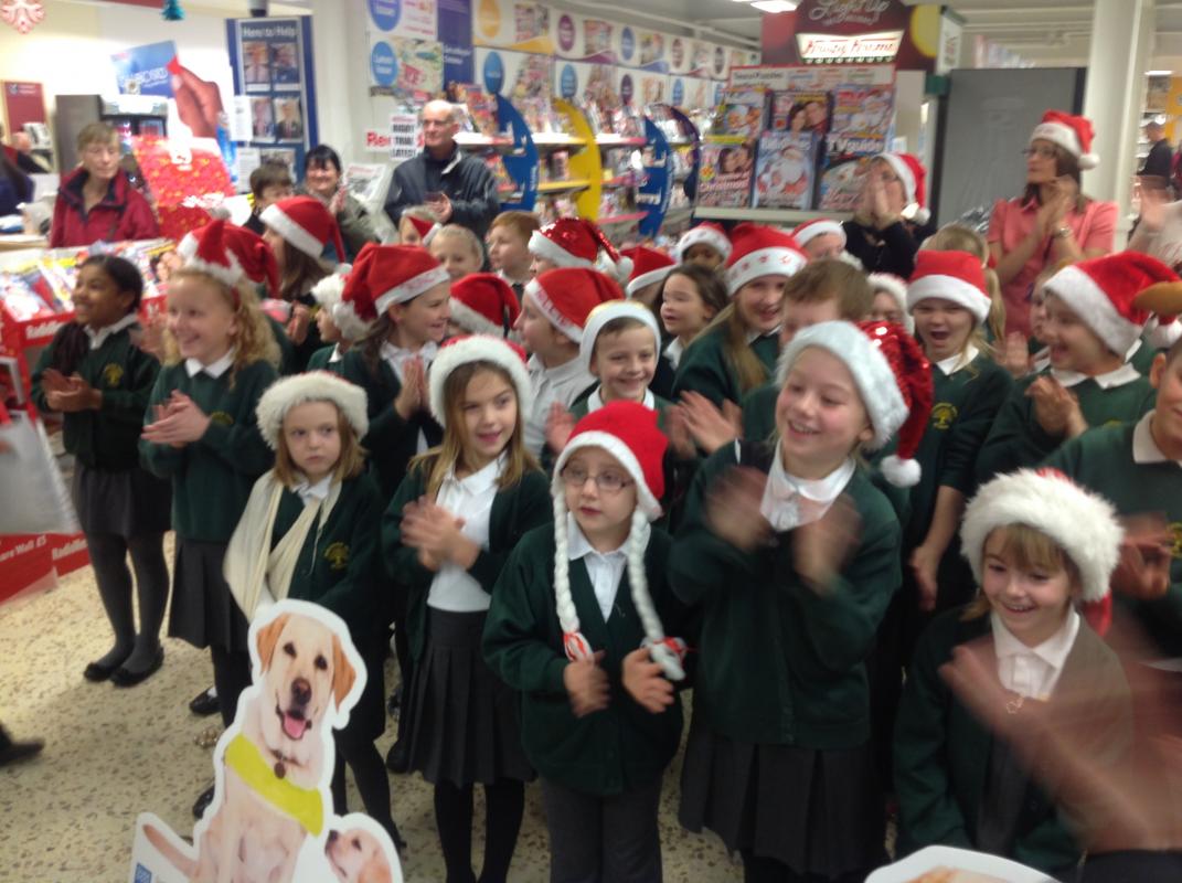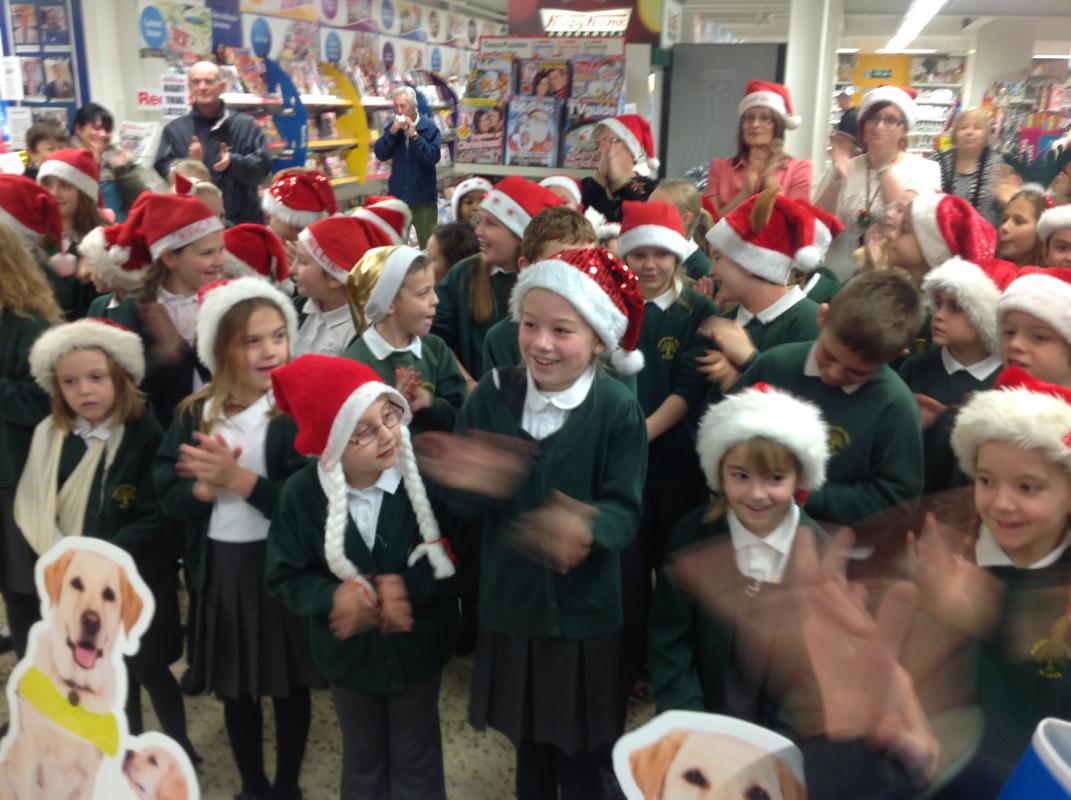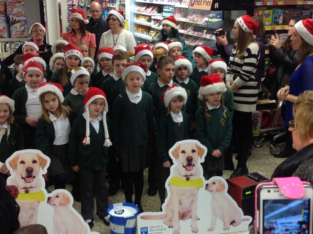 Parsonage Farm choir headed to Rainham Tesco to spread christmas spirit and raise money for the Guide dogs.