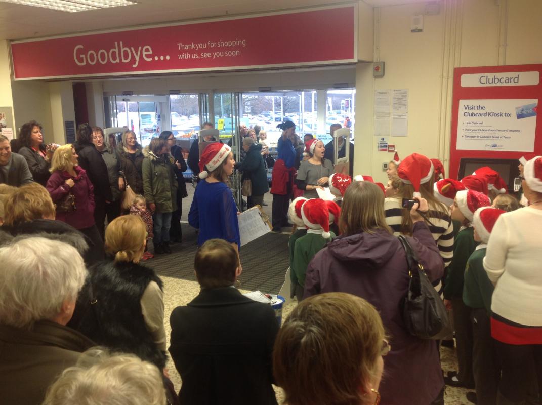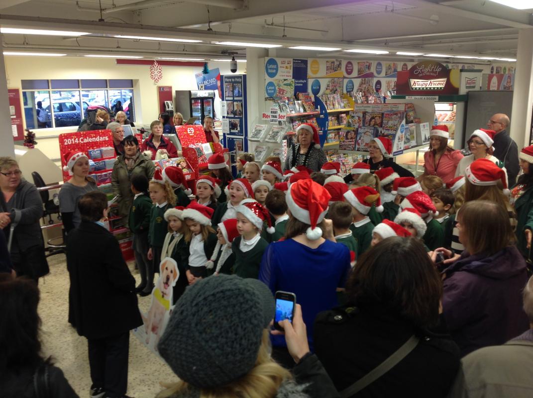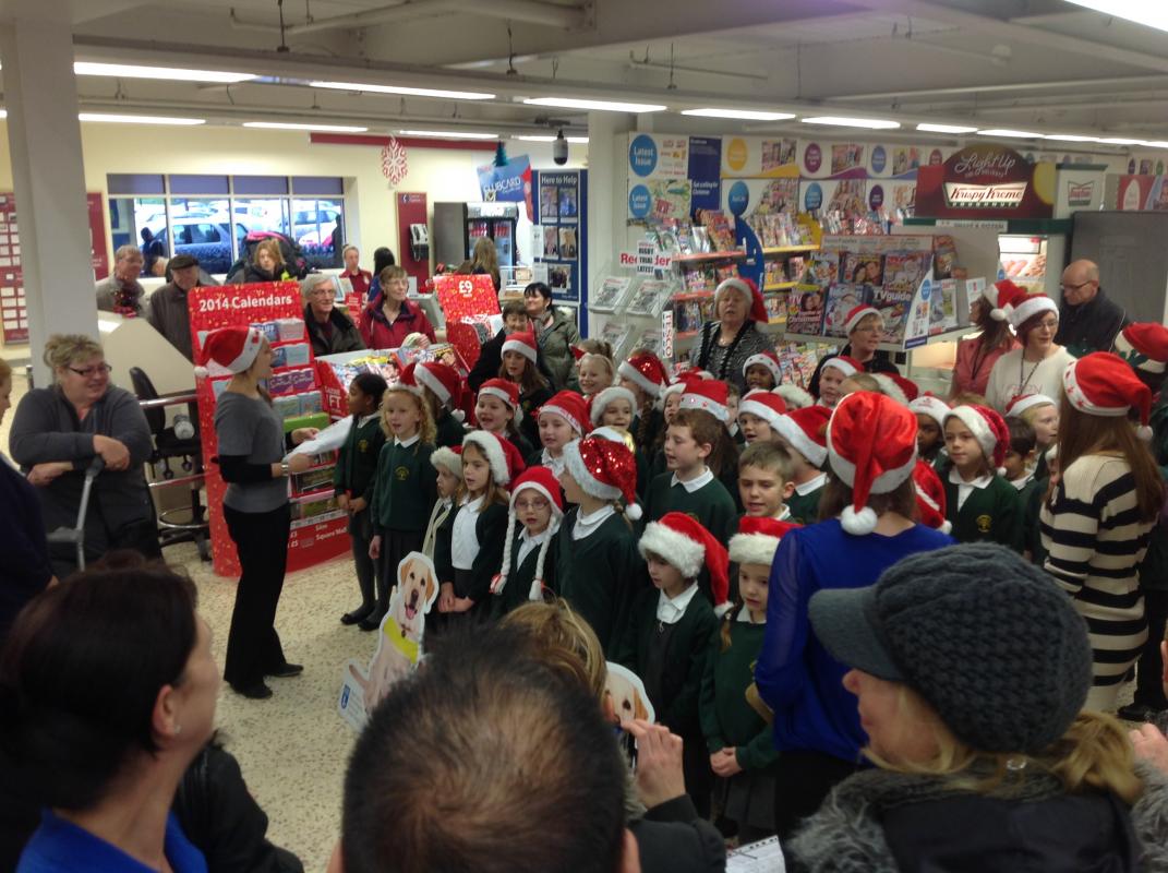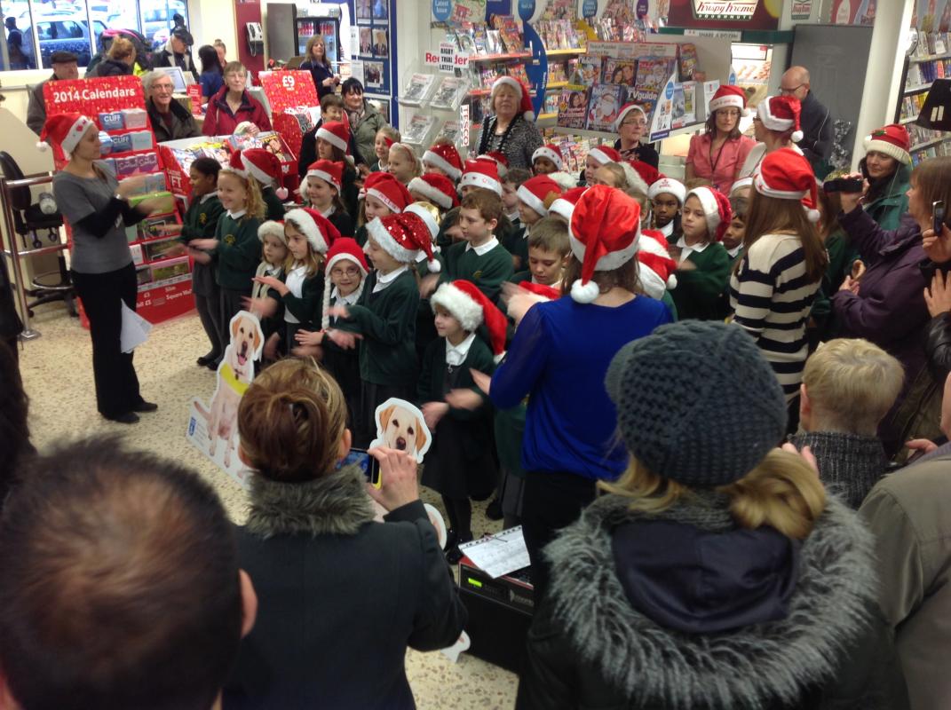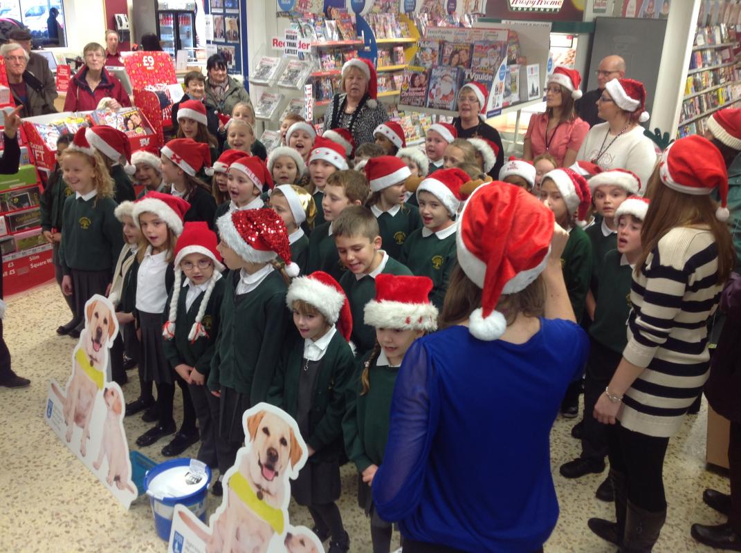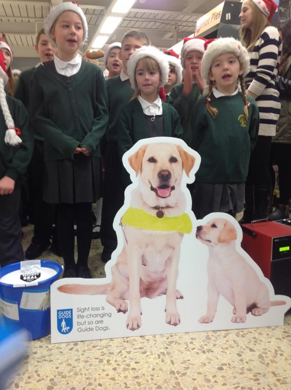 Parsonage Farm choir headed to Rainham Tesco to spread christmas spirit and raise money for the Guide dogs.